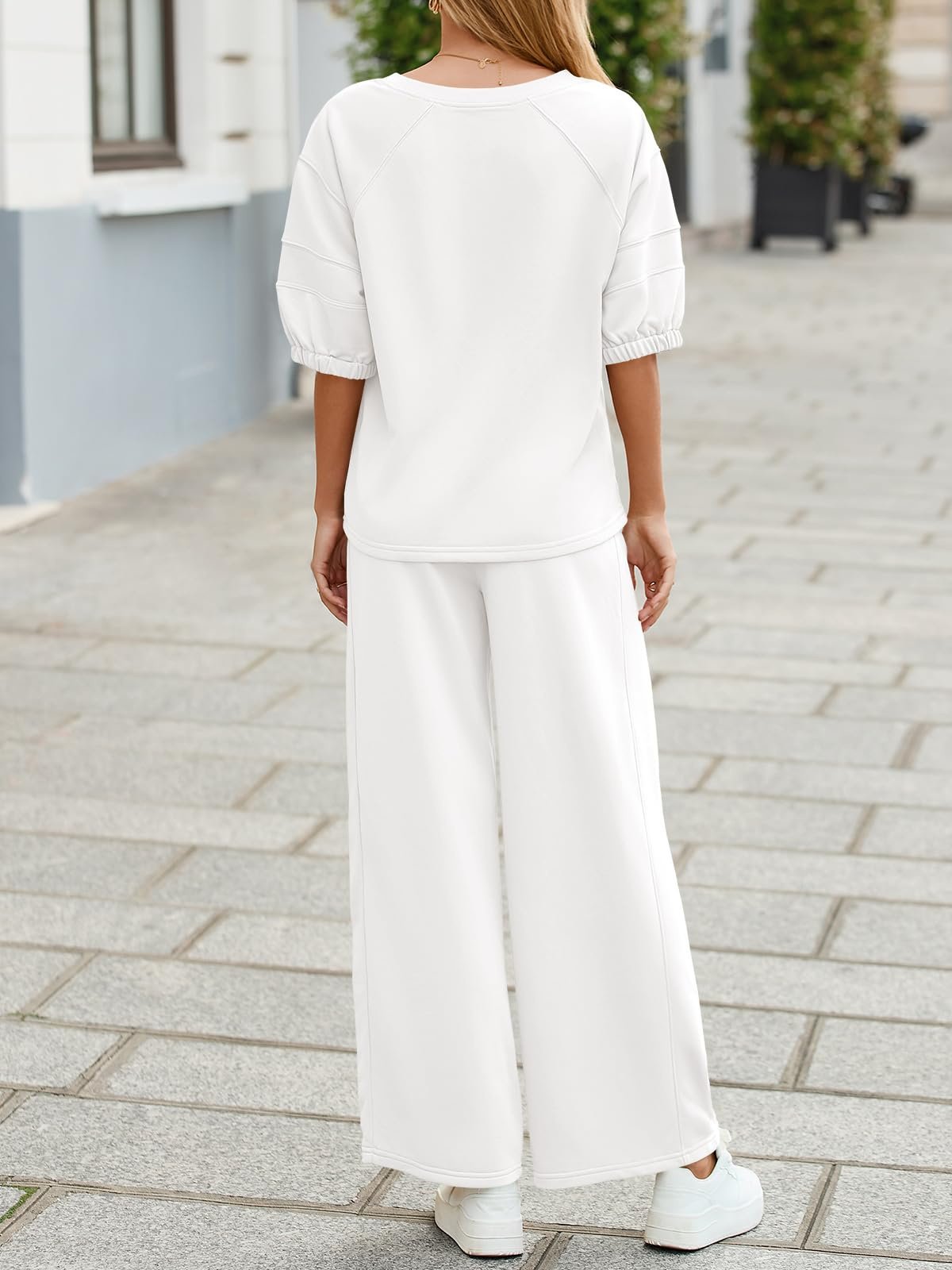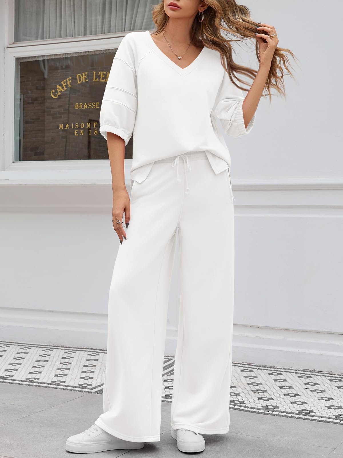 - Pants Style: This lounge sets for women comprises wide-leg pants ,Drawstring high waist design can be adjusted elastic, adjust the fit according to your personal preference and shape the waist line, great for casual wear/dressing up/vacation/travel/business casual/work